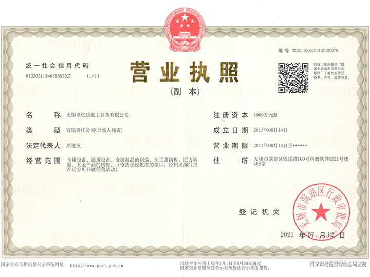 無錫卓億達(dá)化工裝備有限公司 質(zhì)量合格、誠信經(jīng)營、互惠互利、真誠相待